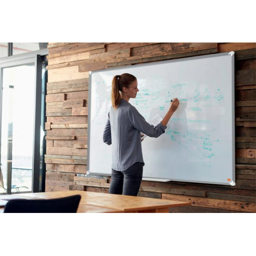 Zománcozott, mágneses, törölhető fehértábla modern stílusú, alumínium kerettel.
